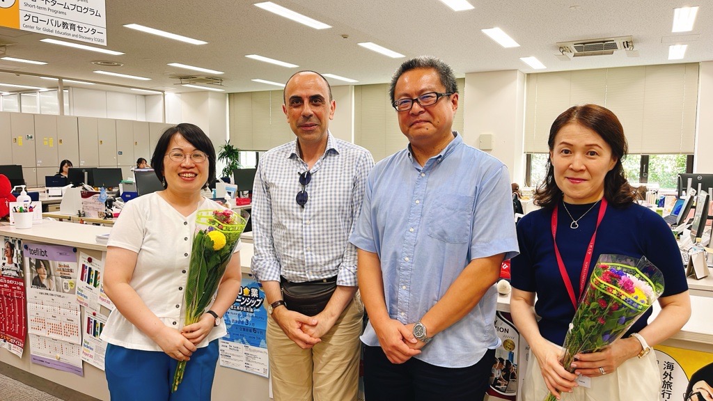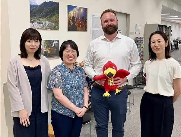 また、8月にはフィリピンのAteneo de Naga University(アテネオ・デ・ナガ大学)から副学長以下8名の訪問団が来訪され、赤堀雅幸学術研究担当副学長と鎌田武仁特任助教、グローバル教育センタースタッフと懇談しました。