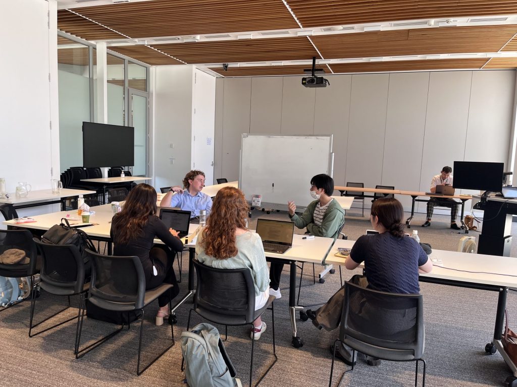 サミット期間中は、両学法学部および上智大学特任教授を合わせた7名の教授陣からレクチャーを受け、多様な視点でテーマについてのインプットを深めると同時に、熱心な質疑応答や学生間でのグループディスカッションを通して両国における社会課題の洗い出しや意見交換を行い、コミュニケ作成に向けての準備を進めました。