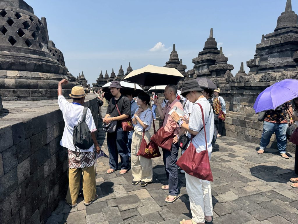 プログラム後半の1週間は、大学を離れて市内各地でのフィールドワークを実施し、知的障がい者の自立支援を行うNGOや、難民支援を行うイエズス会のNGOなどを訪問し、現地の社会課題の解決に取り組む活動について学習しました。また、郊外にある世界文化遺産のボロブドゥール遺跡(世界最大級の石造の仏教遺跡)も訪問し、ガイドの解説を通じて、当時の仏教とヒンドゥー教の共存や、その後のイスラム教の広がりなど、インドネシアの歴史と文化が重層的に築かれてきたことに触れる機会となりました。