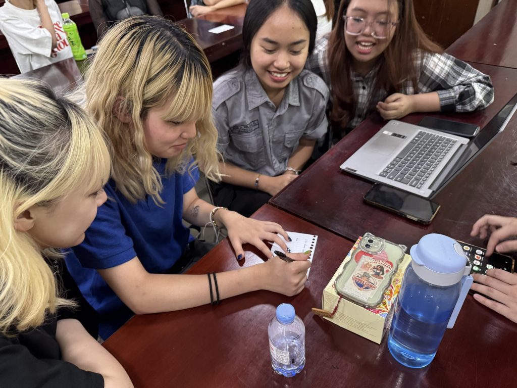 また、文化体験は体験プログラムだけでなく、サナタダルマ大学の現地学生との交流プログラムも実施しました。現地学生とのディスカッションを通じて、インドネシア各地の食文化について学んだほか、インドネシア語でグリンダム(Gurindam:インドネシアなどのマレー語圏に伝わる2行1組の短い形式で、韻律や音節数の制約を守りながら、簡潔な言葉で、深い教訓や哲学をリズミカルに表現した詩)を創作するワークショップを通じて、インドネシアの言語による文化表現を体験しました。