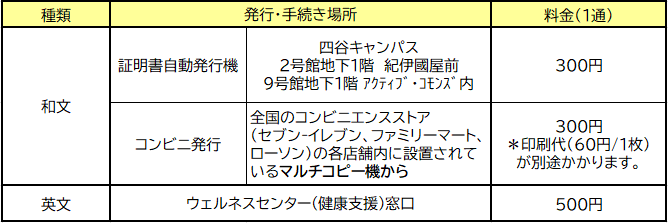 ※証明書が必要で、上記の理由により発行不可の場合は、ウェルネスセンター(健康支援)に相談してください。