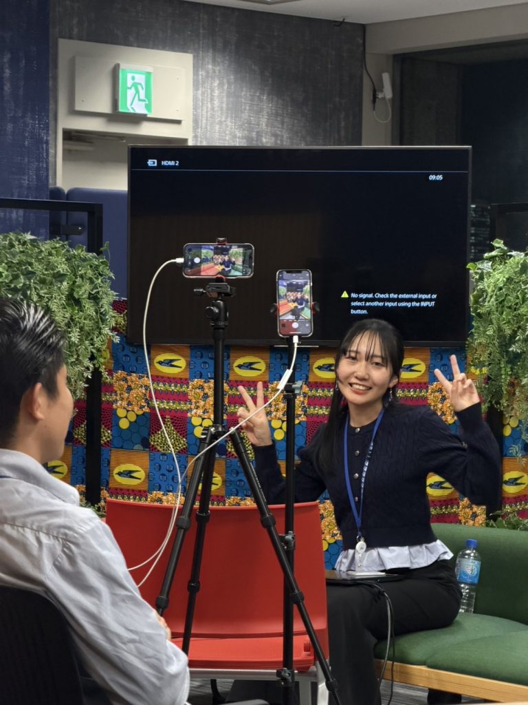 私は秋学期の 5 ヶ⽉間、JICA⻘年海外協⼒隊事務局参加促進課でインターンをさせていただきました。部署の名の通り、JICA 海外協⼒隊への応募に踏み出すきっかけを作ったり、背中を押すために主に SNS に投稿する画像や動画の作成、イベントの運営を⾏ったりする部署で、週に 2⽇〜3⽇ほどフルタイムで出勤しました。